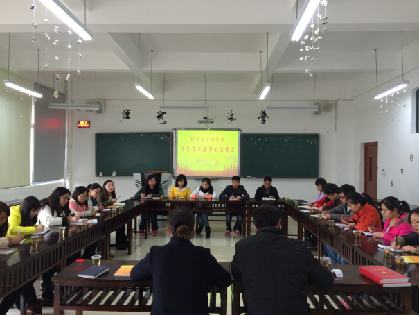2014年3月14日下午,2026世界杯官网在花溪校区GJ1202召开了员工党支部书记培训扩大会议。公司党委副书记项君、组织员赵本喜、院团委书记张晶晶、2012级辅导员向凯麟、2013级辅导员赵元钊出席本次会议,经济与管理学...