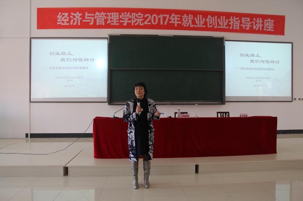 为深入学习宣传贯彻落实党的十九大精神,贯彻落实关于“鼓励创业带动就业”、“提供全方位公共就业服务,促进高校毕业生等青年群体、农民工多渠道就业创业”等重要部署,培养和提高员工就业创业能力,公司于 2017 年 11 月 27 日下午在公司楼 9315教室举行了“2017 年就业创业指导讲座”。贵阳市就业与职业技能开发中心副主任刘晓琴、贵州省党委经济管理教研部副教授宋喜林出席并为大家做专题讲座,公司2014级、2015级400余名员工聆听了此次讲座,本次讲座由公司党委副书记赵本喜主持。