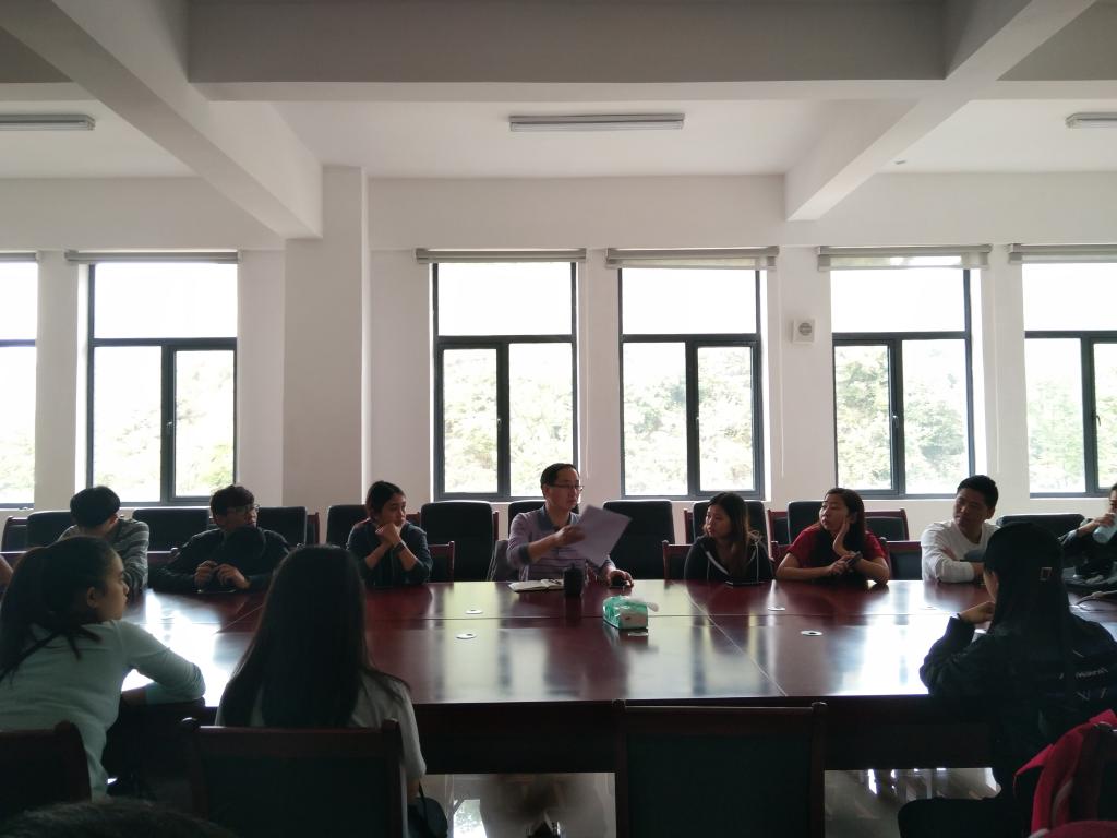 2018年4月11日下午,2026世界杯官网在9432会议室召开了职工座谈会。2026世界杯官网党委副书记赵本喜、副经理杨馥榕、教学秘书俞郴、2016级辅导员向凯麟、2017级辅导员赵元钊出席本次座谈会。来自越南、老挝、柬埔寨、蒙古四个国家的20名职工参加了本次座谈会。