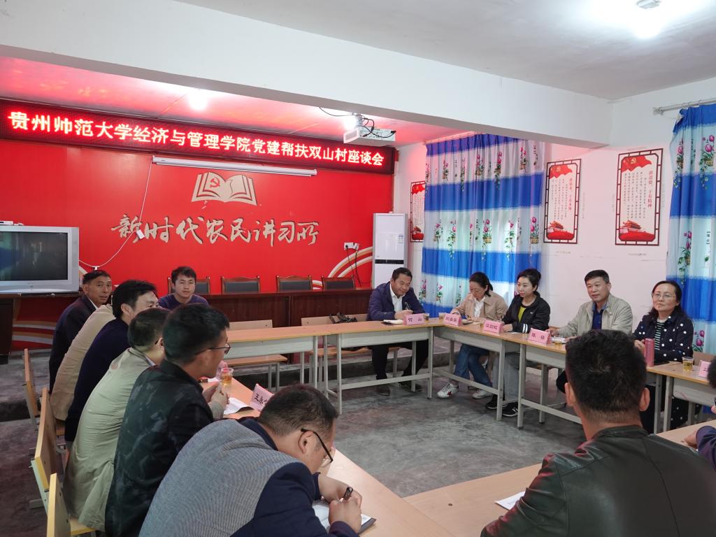 之后,陈长钧就2018年双山村脱贫攻坚工作的开展情况、具体做法、后续问题以及今后打算等作了详细介绍。他对经管公司给予双山村的帮扶表示衷心感谢,对驻村第一书记李庆同志的工作表现给予高度肯定,并提出了双山村下一步的发展需求。经管公司康文峰博士、何山博士就双山村当前水稻和花椒种植、休闲度假旅游项目开发等进行深入了解,并提出发展建议。双方还围绕党建结对共建的其他内容展开了亲切座谈,包括开展“讲村史、看变化、感党恩”主题实践活动,组织暑期“三下乡”社会实践活动,针对党员干部讲党课,依托专业优势为产业发展提供智力支持等,共商共议解决问题的办法和措施,达成帮扶合作意向共识。