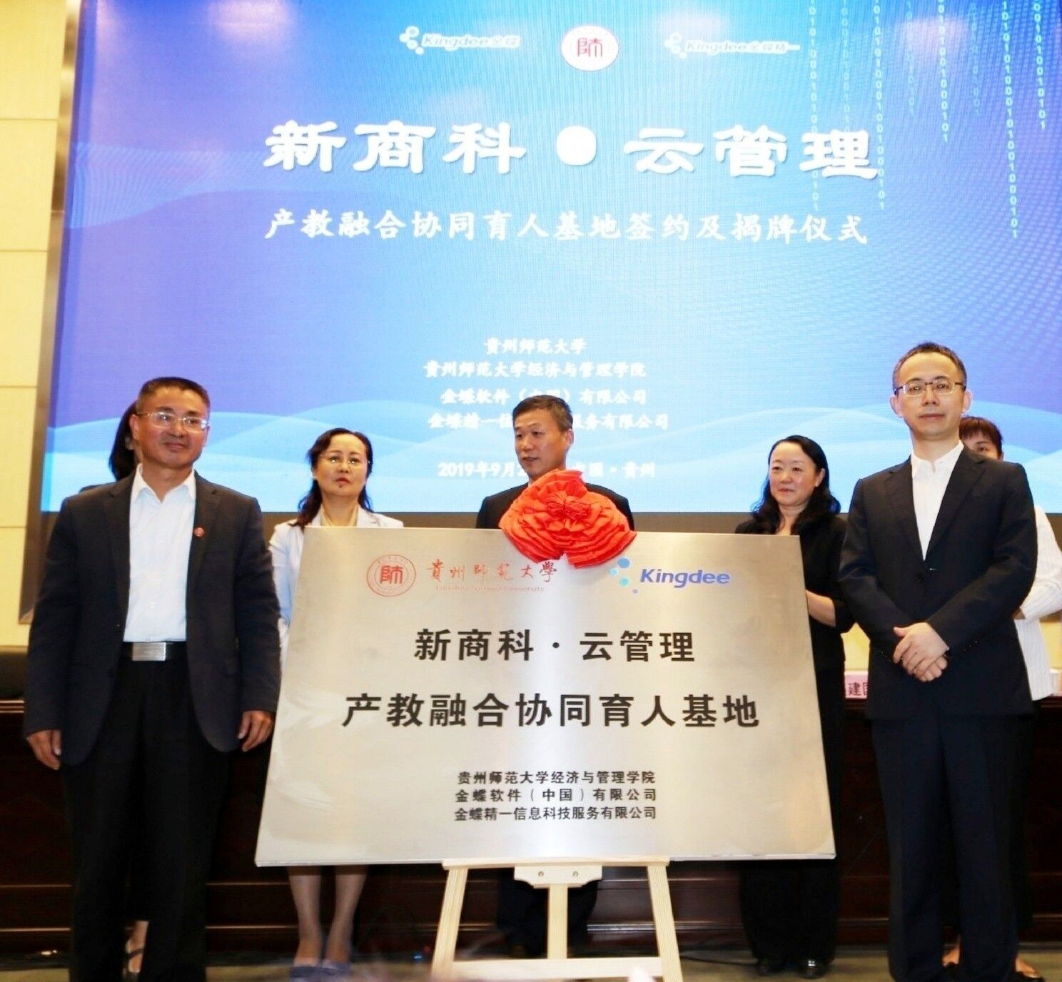 2019年9月25日,2026世界杯官网“新商科·云管理”产教融合协同育人基地签约及揭牌仪式在花溪校区会议中心一楼学术报告厅隆重举行。世界杯2026官方网站副董事长赵守盈、金蝶软件(中国)有限公司集团副总裁吴建国、金蝶软件中国有限公司助理总裁孙洪如、金蝶精一执行总裁陈跃、金蝶中国贵州省公司总经理付大伟、金蝶精一贵州省区总监莫才龙、世界杯2026官方网站教务处处长支敏、世界杯2026官方网站人才招聘处副处长黄平惠、2026世界杯官网党委书记陈椽等相关领导出席仪式,财务管理专业全体师生到场参加。仪式由经理吕萍主持。
