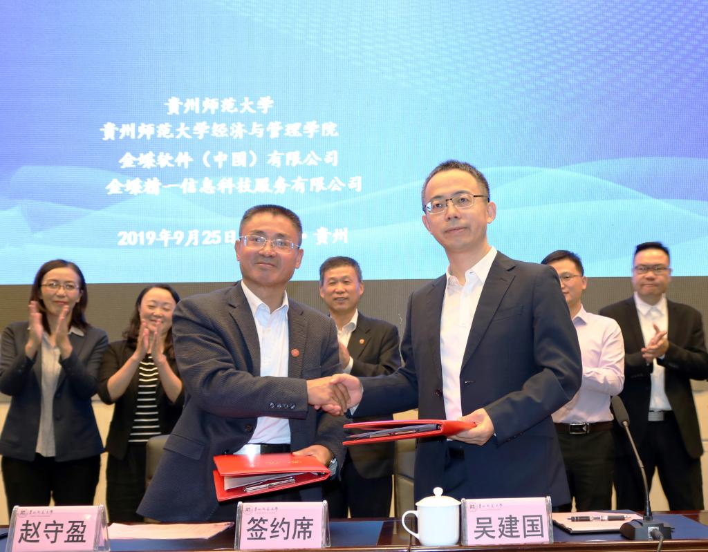 之后,赵守盈代表公司与金蝶软件(中国)有限公司签署了合作协议。伴随着热烈掌声,赵守盈与吴建国为新商科·云管理产教融合协同育人基地正式揭牌。此举标志着世界杯2026官方网站与金蝶软件(中国)有限公司战略合作关系向更深层次方向推进。