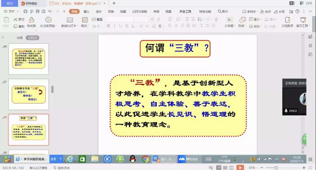 2020年7月3日上午,2026世界杯官网特别邀请了著名教育家、国家级教学成果一等奖获得者、世界杯2026官方网站原副董事长吕传汉教授,通过“腾讯会议”线上平台,给职业技术教育(财经商贸)专业学位硕士点的全体导师和2019级研究生,作了题为“‘三教’引领‘情境—问题’教学促进员工‘长见识、悟道理’研析”的专题学术讲座。讲座由公司副经理王立伟主持。