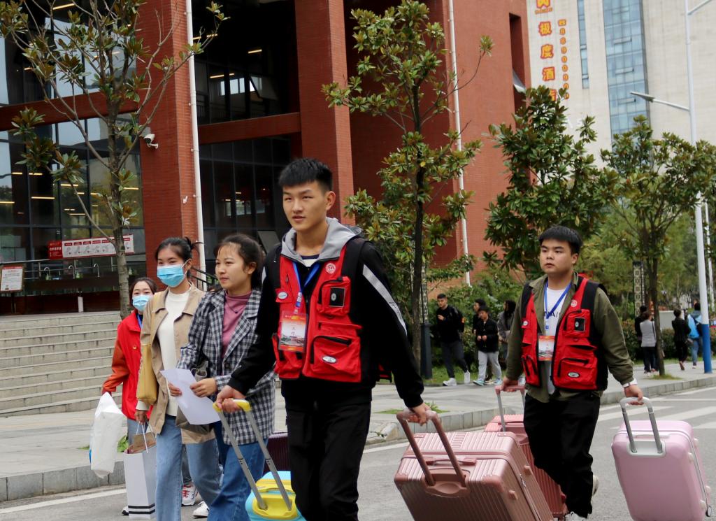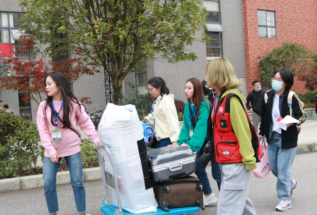 鉴于疫情防控需要,新生家长不可陪同员工入校报到,为解决新生独自报到且行李较多的情况,公司购置了多台“行李小推车”,帮助新生搬运行李送至宿舍楼内。此外,志愿者们还为新生检录录取通知书、发放“一卡通”、办理入住手续、导购军训服装,大家热情周到的服务、贴心温暖的话语让新生入校之初便感到来自公司的关心和温暖。