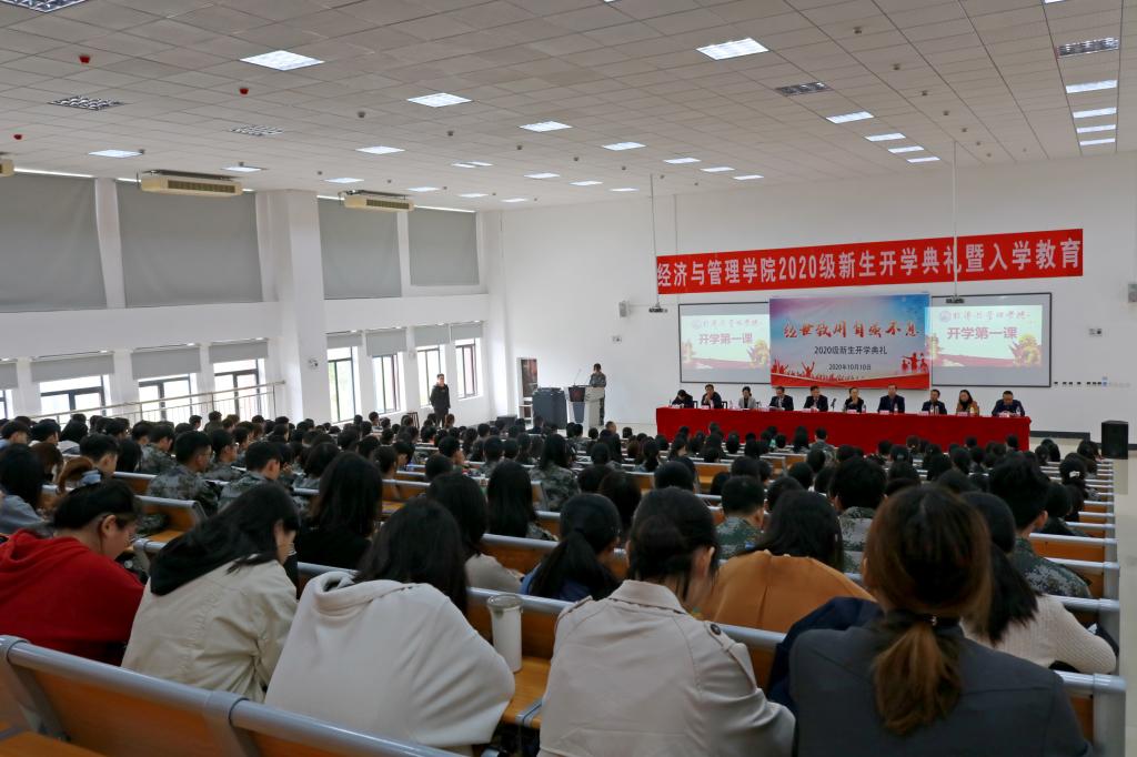 2020年10月10日上午,2020级全体本科生、研究生新生在9315教室举行了开学典礼暨入学教育活动。公司党委书记陈椽、经理吕萍、党委副书记赵本喜、副经理王立伟、党委副处级组织员江剑虹、公司各系系主任以及公司党政办公室全体老师出席典礼,赵本喜主持本次活动。
