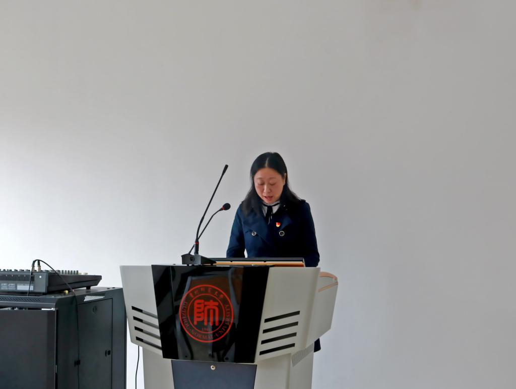 教师代表刘芸芸老师围绕“大学之梦”、“大学之学”、“大学之成”三个关键词,循循善诱,教育引导同学们应该如何学习,如何成长。刘芸芸谈到:“学习是一种态度,一种思维习惯,大学的学习一定是主动的,是自己学习方式的突破。”她鼓励同学们要在苦读书、勤思考的前提下勇于实践,在实践中提高做事的能力,要有敢于人先的气概和不怕失败的勇气。