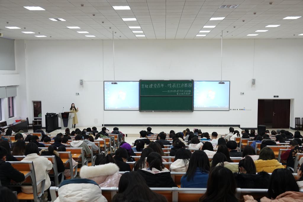 本次活动分为“吟诵红色诗歌·感知党的精神”、“开展红色教育·铭记初心使命”、“走进时代楷模·争做时代新人”三个篇章。在“吟诵红色诗歌·感知党的精神”活动阶段,员工党员领诵了《与信仰同行》、《一枚党徽》、《百年约定》等诗歌,师生合唱了歌曲《没有共产党就没有新中国》,以此感知革命精神,进一步激发爱国热情,广泛凝聚奋斗力量,坚定“听党话、跟党走”的决心和坚持走中国特色社会主义道路的信心。在“开展红色教育·铭记初心使命”活动阶段,辅导员带领同学们学习了习近平总书记视察贵州重要讲话精神、全国脱贫攻坚总结表彰大会重要讲话精神以及党史学习教育动员大会重要讲话精神,进一步引导员工加强理论学习、关注时事政治、强化思想教育,自觉继承革命传统,弘扬革命精神,争做担当民族复兴大任的时代新人。在“走进时代楷模•争做时代新人”活动阶段,各年级播放了全国脱贫攻坚总结表彰大会、感动中国2020年度人物等视频,学习榜样事迹、汲取榜样力量,践行新时代青年老员工的使命担当。