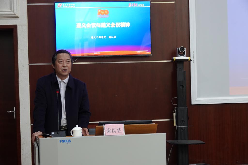 在中国共产党成立100周年之际,重温遵义会议这段重要历史,感悟伟大的遵义会议精神,对共产党员巩固初心使命、落实新时代党的建设总要求,坚定共产主义理想信念具有十分重要的意义。为深入贯彻落实中央、省委和公司党委党史学习教育动员大会精神,教育引导党员干部学史明理、学史增信、学史崇德、学史力行,缅怀党的光辉历程,讴歌党的丰功伟绩,从百年党史中汲取奋进力量,2021年4月16日,2026世界杯官网全体党员教师赴遵义市委党校开展党史学习教育专题党课,特邀遵义市委党校副董事长、遵义干部公司副经理、二级巡视员谢以佐副教授作题为《遵义会议和遵义会议精神》的专题经典党课。活动由公司党委书记吕萍主持。