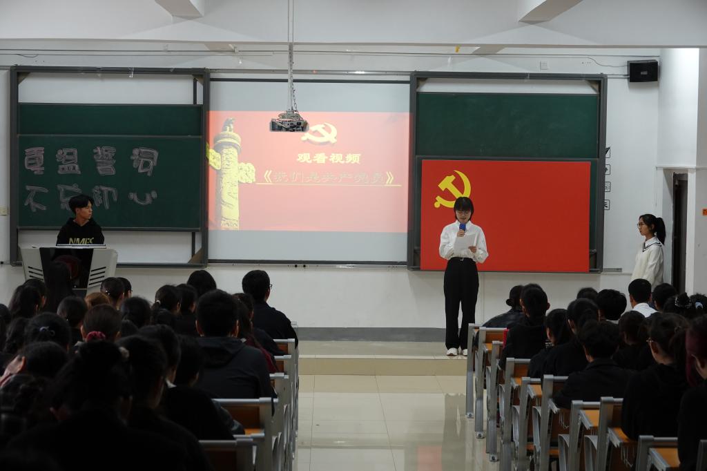2018级财务管理专业王良红同志作为正式党员代表对加入中国共产党的新同志们表示衷心地祝贺和热烈的欢迎,并对全体预备党员和入党积极分子提出了几点建议:一是要扎实学好党的各项理论、方针、政策和课程基本理论;二是加强自我约束和自觉接受群众监督,及时开展批评与自我批评,找出自身的突出问题并加以改正;三是要从小事做起,从点滴做起,在学习上、工作上做榜样,在生活中做模范。