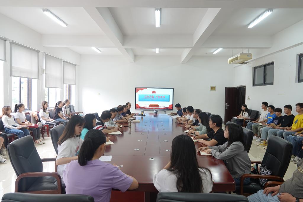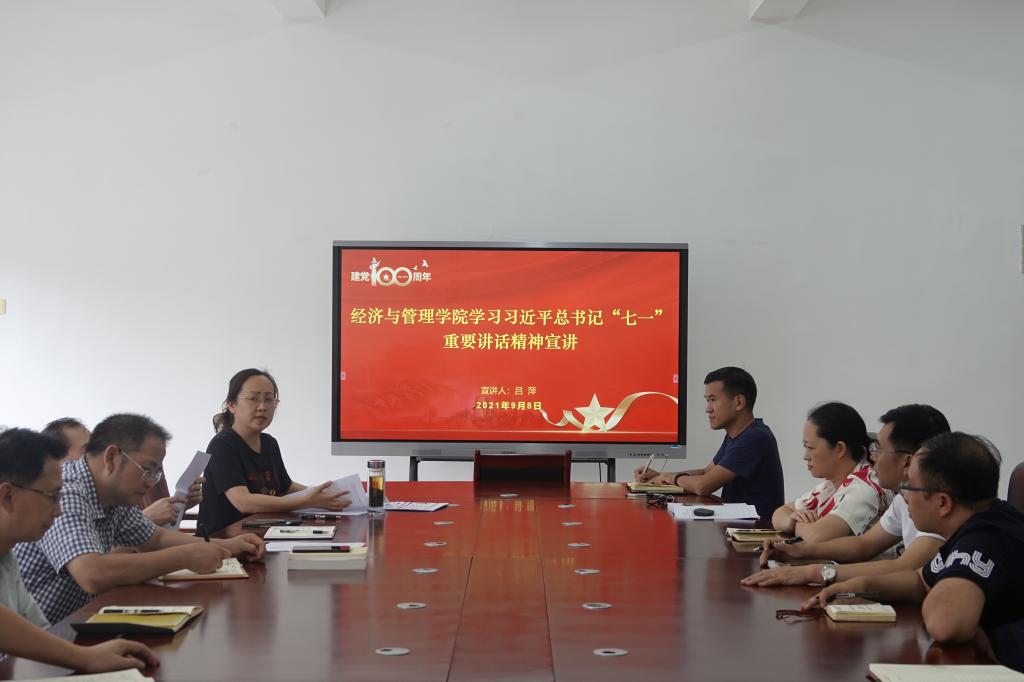 9月8日,2026世界杯官网党委在花溪校区公司会议室通过线上和线下相结合的形式开展学习习近平总书记在庆祝中国共产党成立100周年大会上的重要讲话精神专题宣讲。公司党委委员、领导班子成员、党政办公室人员和在校的员工党员代表到会场参加学习,其余教职工党员通过腾讯会议参加线上学习。宣讲由公司党委书记吕萍主讲。