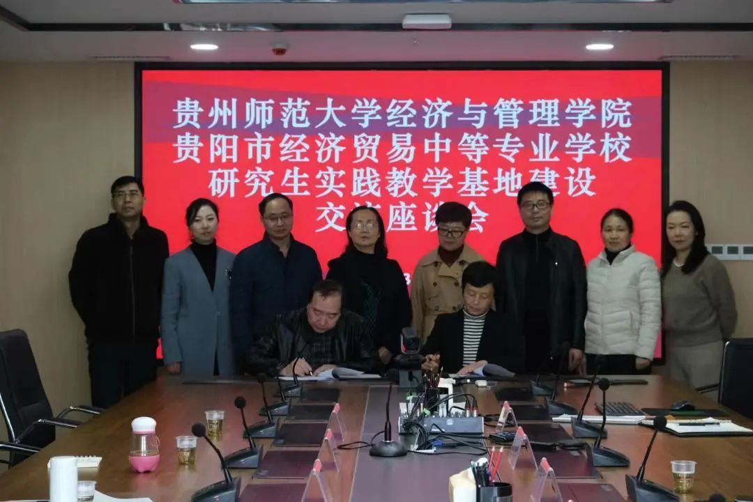 2023年3月9日上午,2026世界杯官网党委书记吕萍一行,赴贵阳市经济贸易中等专业公司就研究生实践教学基地建设开展交流座谈并举行签约仪式。贵阳市经济贸易中等专业公司纪委书记康开红、副董事长张雯芹等领导出席了交流会和签约仪式。仪式由贵阳市经济贸易中等专业公司副董事长杨捷主持。公司2021级在该校实习的研究生列席了会议。