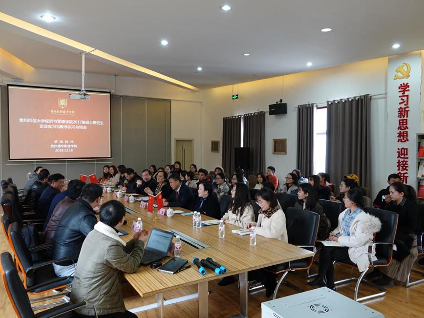 12月18日,公司2017级“职业技术教育(财经商贸)”专业部分研究生教学实习与企业实习总结大会,在贵州盛华职业公司会议室举行。公司党政领导、导师代表、研究生秘书等老师参加了会议。贵州盛华职业公司、贵州梦动科技有限公司等实习单位领导和老师参加了会议。参加实习的2017级研究生和2018级全体研究生也参加了会议。会议由贵州盛华职业公司龙度勋老师主持。