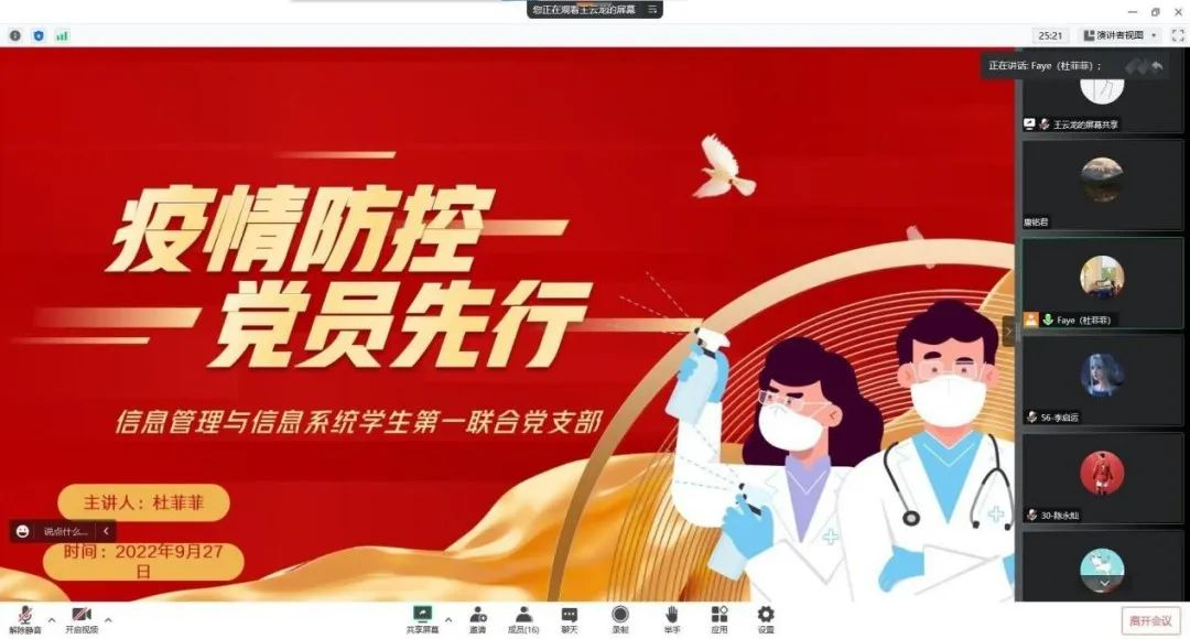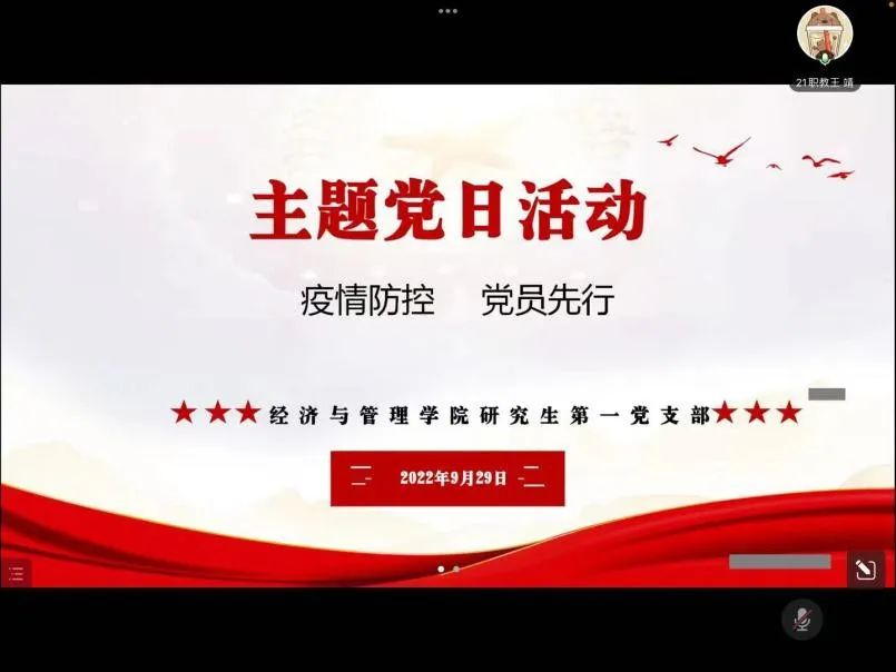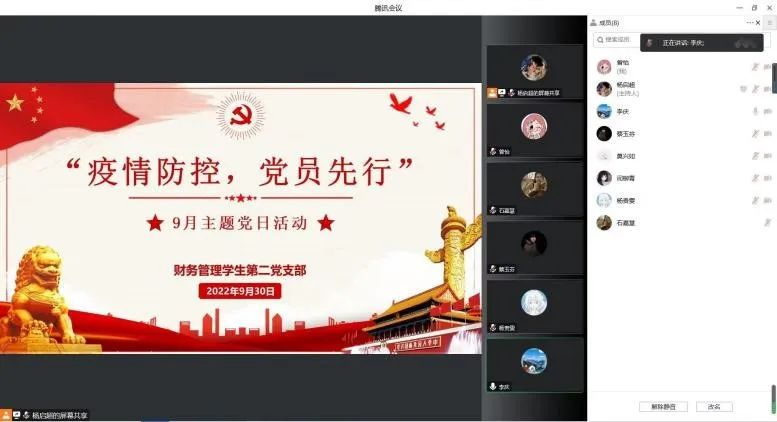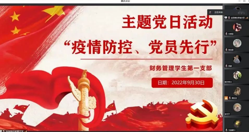 为全力做好疫情防控工作,增强全体党员的责任感、使命感,提升党组织的凝聚力、向心力和战斗力,充分发挥党员的先锋模范作用,为打赢疫情防控阻击战提供坚强有力的组织保证,让党旗在疫情防控一线高高飘扬,2022年9月27日至10月6日,2026世界杯官网各基层党支部通过线上线下相结合的方式开展了“疫情防控、党员先行”主题党日活动。活动中,各支部党员师生围绕主题纷纷进行了交流发言。