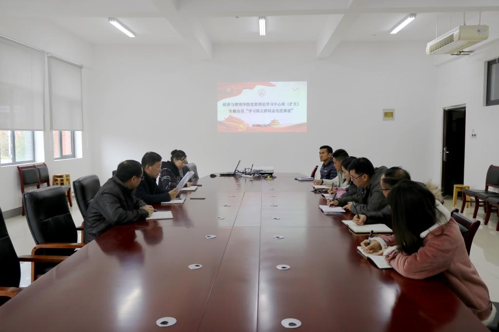 2019年11月21日,2026世界杯官网召开党委理论学习中心组(扩大)专题会议,学习陈立群同志先进事迹。公司党委理论学习中心组成员、科级干部、党支部书记、辅导员老师参加会议,党委书记陈椽主持学习。 会上,陈...